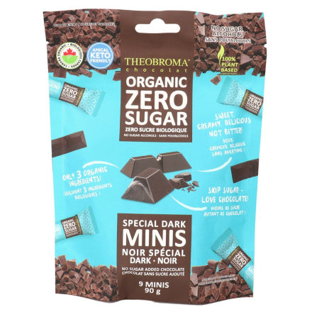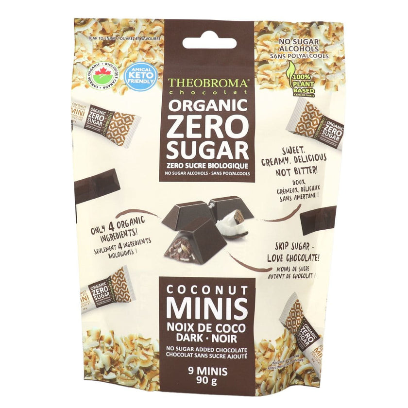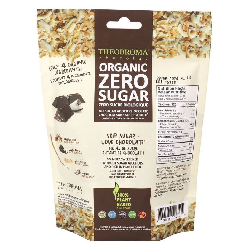 Theobroma Chocolat Mini-Carrés de Chocolat Noir Biologique Sans Sucre Ajouté aux Noix de Coco, 9 Barres